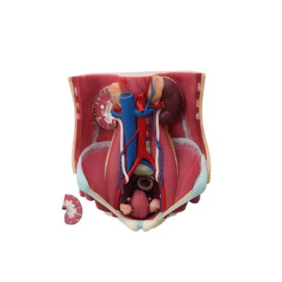 O modelo de anatomia de silicone do sistema urinário humano mostra principalmente os vários órgãos do sistema urinário, a estrutura anatômica interna da seção renal, a bexiga masculina, a anatomia interna e externa da bexiga feminina e a anatomia muscular da parede abdominal posterior, etc. |